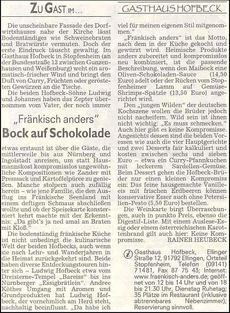 im rahmen der serie “zu gast im . .” geben die nürnberger nachrichten regelmäßig interessante und außergewöhnliche tipps zum thema einkaufen, essen gehen oder kulturellen veranstaltungen. mitte september wurde auch unser restaurant mit einem artikel näher vorgestellt. vielen dank auch an rainer heubeck für den sehr gelungenen bericht. |